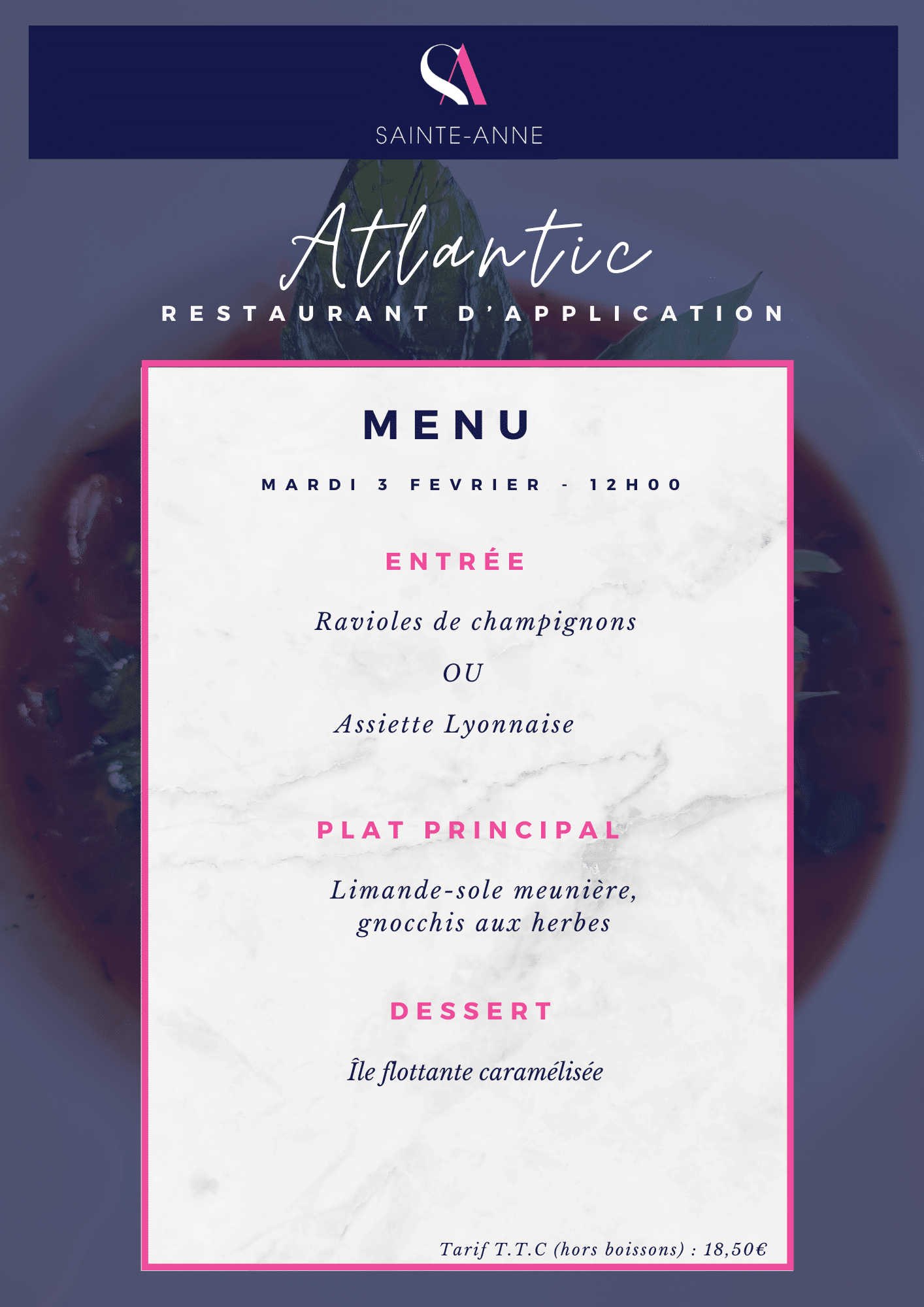 Nous vous invitons à découvrir le talent de nos étudiants et à vivre une expérience authentique au restaurant Atlantic.